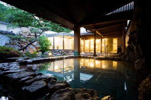 2種類の泉質と15種類のお風呂がある温泉旅館。